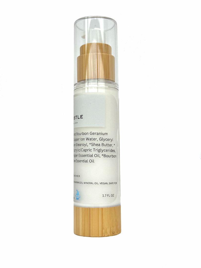 A cream made just for men's beard and face. A blend of hyper oxygen and copper ion infused water with carefully picked organic oils, butter and extracts. This cream will leave your face clear and blemish free while softening beard hair. The organic tea tree extract stimulates hair growth so your beard comes in full. Note: helps face and beard to be smooth, not pick up lines.